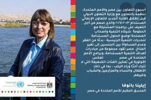 تعتبر الأمم المتحدة هي أحد أهم شركاء التنمية متعددي الأطراف للحكومة المصرية، حيث وضعت الحكومة المصرية أهدافًا واضحة ورؤية إنمائية تستهدف في مقدمتها الفئات الأولي بالرعاية والأكثر إحتياجًا، وقد مثلت الأمم المتحدة ووكالاتها المتخصصة حجر الزاوية في العديد من الإستراتيجيات والأنشطة الإنمائية المشتركة نظراً لما تتميز به من خبرات واسعة في كافة المجالات ذات الصبغة الاقتصادية والاجتماعية والبيئية.