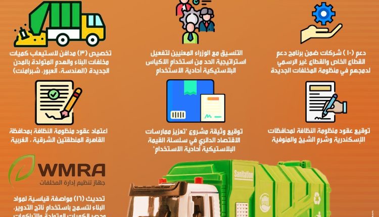 وأوضحت الدكتورة ياسمين فؤاد انه في إطار توجيهات السيد رئيس الوزراء، يتم التنسيق مع الوزراء المعنيين لتفعيل استراتيجية الحد من استخدام الاكياس البلاستيكية أحادية الاستخدام ، وتفعيل المادة رقم 27 بقانون تنظيم إدارة المخلفات ولائحته التنفيذية حول تداول الاكياس البلاستيكية احادية الاستخدام، والمادة رقم 11 من اللائحة التنفيذية للقانون حول المسئولية الممتدة للمنتج، والذي يتم العمل على تطبيقه على الأكياس البلاستيكية أحادية الاستخدام للوصول لمعدل استهلاك 50 كيس للفرد في العام بحلول 2030، بدلا من متوسط 565 للفرد في السنة في القاهرة الكبرى ومابين 500 – 350 كيس للفرد على مستوى الجمهورية، والتنسيق مع السيد وزير التجارة والصناعة لصدور قرار سيادته رقم 559 بشأن إعتماد تطبيق المواصفات القياسية المصرية المعنية باكياس التسوق البلاستيكية والبلاستيك القابل للكمر المنزلي، كما تم توقيع وثيقة مشروع “تعزيز ممارسات الاقتصاد الدائري في سلسلة القيمة البلاستيكية أحادية الاستخدام” بدعم من الحكومة اليابانية وبتنفيذ منظمة الأمم المتحدة للتنمية الصناعية (UNIDO)، والتنسيق مع الوكالة اليابانية للتعاون الدولي (JICA) للبدء في المشروع “تحسين سلسلة القيمة لإدارة المخلفات ودعم أدوات إعادة التدوير المحلية وإعادة استخدام المخلفات البلاستيكية” بمحافظة بورسعيد، إلى جانب استمرار أنشطة رفع الوعي واعمال التنظيف للشواطئ لكل من محافظة الاسكندرية والمحميات الطبيعية بشرم الشيخ (نبق – راس محمد )، ورعاية مبادرات الحد من المخلفات البلاستيكية والتوعية بأثرها السلبي على البيئة والاقتصاد، بالتعاون مع مؤسسات المجتمع المدني مثل مؤسسة شباب بيحب مصر، والمكتب العربي للشباب والبيئة.