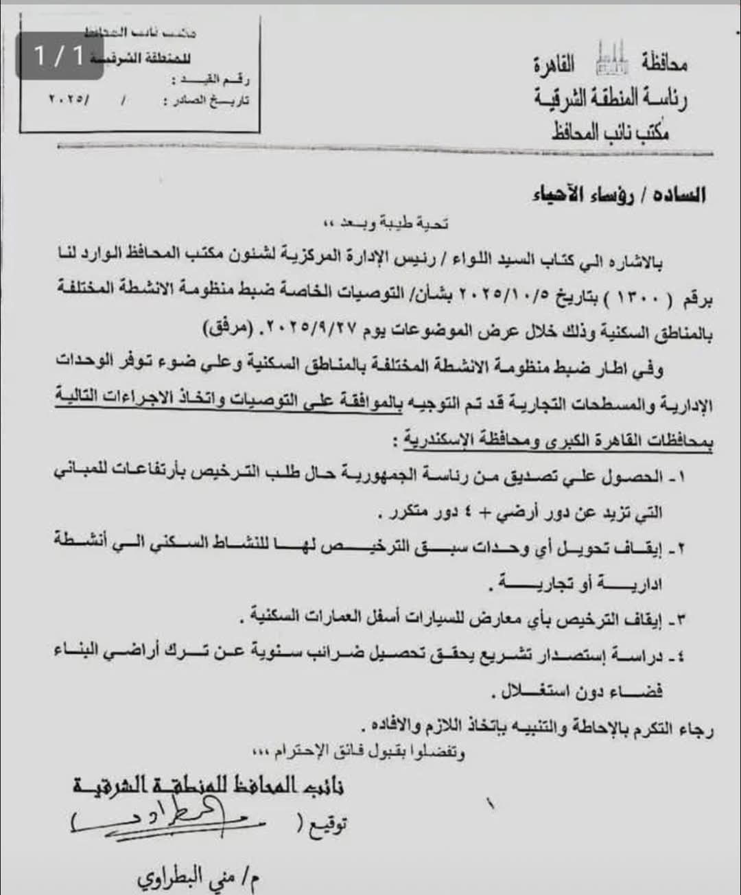 القرار جاء ضمن حزمة من الإجراءات الجديدة الخاصة بتنظيم البناء والأنشطة التجارية بالقاهرة الكبرى والإسكندرية، والتي تضمنت أيضًا ضوابط جديدة لارتفاعات المباني، ومنع تحويل الوحدات السكنية إلى أنشطة تجارية أو إدارية، وفرض ضرائب على الأراضي غير المستغلة.