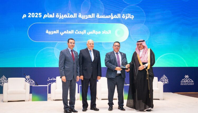 ✅ فاز اتحاد مجالس البحث العلمي العربية بجائزة المؤسسة العربية المتميزة لعام 2025، وذلك على هامش المؤتمر الدولي العاشر لمعامل التأثير العربي، الذي استضافته جامعة الملك خالد بالمملكة العربية السعودية، تقديراً لدوره البارز في دعم مسيرة البحث العلمي وتعزيز التعاون العربي المشترك في مجالات المعرفة والابتكار.