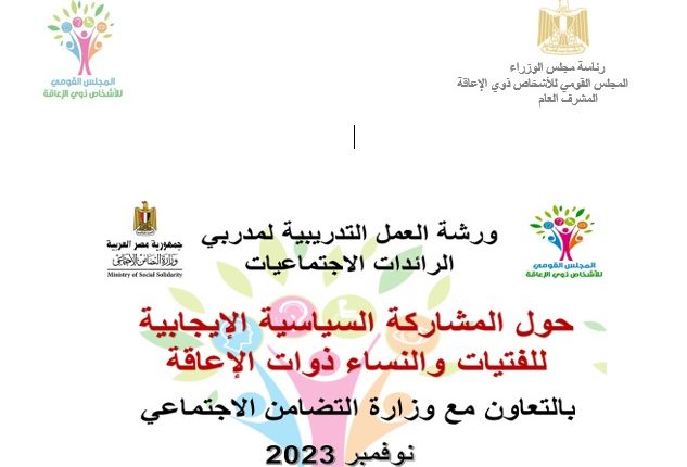 جدير بالذكر أن الورشة قام بتقديم التدريب داخلها الدكتورة نهى سليمان، مدير المكتب الفني للمشرف العام على المجلس القومي للأشخاص ذوي الإعاقة، وأسماء أبو سريع مسئول إدارة المجتمع المدني بالمجلس.