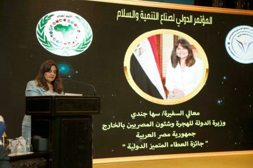 المؤتمر الدولي لصناع التنمية والسلام ٢٠٢٢ يمنح وزيرة الهجرة جائزة “العطاء المتميز” لجهودها في خدمة المصريين بالخارج