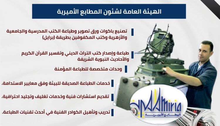 تعرف على أنشطة وخدمات الهيئة العامة لشئون المطابع الأميرية ودورها في تقديم خدمات متميزة للقطاعات الانتاجية والخدمية لمواكبة أحدث المتغيرات في عالم صناعة الطباعة