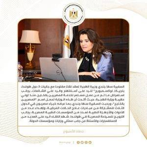 تنشر وزارة الدولة للهجرة وشئون المصريين بالخارج، تقريراً تسلط من خلاله الضوء على النشاط الأسبوعي للسفيرة سها جندي وزيرة الهجرة، وذلك خلال الفترة من 28 يناير إلى 2 فبراير الجاري وهو كالآتي: