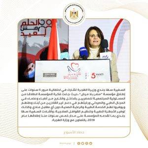 إطلاق مؤسسة “مصر بلا مرض”، حيث جاءت فكرة المؤسسة انطلاقا من المسئولية المجتمعية للمصريين بالداخل والخارج من أطباء وعلماء في المجال الطبي والصيدلي ورغبتهم في أن يدعموا غير القادرين من أبناء وطنهم ويوفروا لهم الخدمة الطبية والرعاية الصحية دون أي مقابل مادي وكذلك توفير الأجهزة الطبية وتنظيم القوافل العلاجية، وأشادت السفيرة سها جندي بما تقدمه المؤسسة على مدار خمس سنوات منذ إطلاقها عام 2019، بالتعاون مع وزارة الهجرة، وقدمت المؤسسة تجربة عدد من شباب الأطباء المصريين بالخارج في علاج المصريين في تخصصات الرمد والأسنان والأنف والأذن وغيرها من التخصصات.