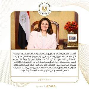 1) أعلنت السفيرة سها جندي وزيرة الهجرة، انعقاد النسخة الرابعة من مؤتمر “المصريين بالخارج” في يوم 31 يوليو القادم، الذي يعد “الملتقى السنوي” الذي تنظمه وزارة الهجرة ويشارك فيه المصريون من كل دول العالم، مضيفة أنه من المقرر أيضًا تنظيم زيارات ميدانية على هامش المؤتمر إلى عدد من المشروعات القومية والمناطق الاستثمارية الهامة حتى يتسنى لأبناء الجاليات المصرية الاطلاع على الفرص المتاحة والمشاركة فيها.