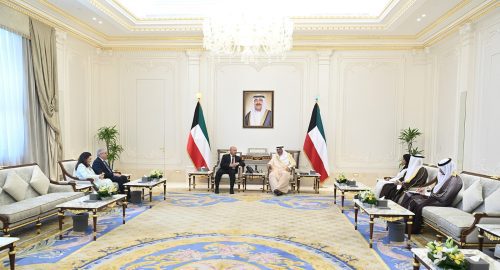 استقبل سمو الشيخ صباح خالد الحمد الصباح، ولي عهد الكويت ، الفريق مهندس / كامل الوزير نائب رئيس الوزراء للتنمية الصناعية، وزير الصناعة والنقل المصرى وبحضور معالي الدكتورة نورة المشعان وزير الأشغال العامة والنقل بدولة الكويت السفير اسامة شلتوت سفير مصر في الكويت والمستشارة نورا عبد الهادي نائب رئيس البعثة الدبلوماسية المصرية بالكويت