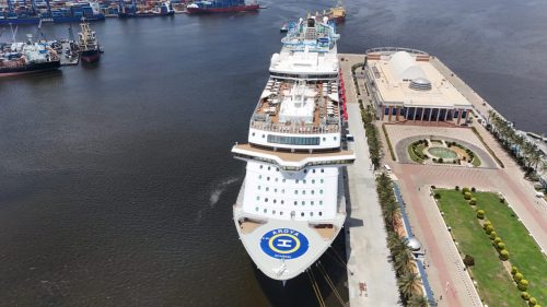 نائب رئيس مجلس الوزراء للتنمية الصناعية وزير الصناعة والنقل يتفقد محطة الركاب السياحية بميناء الإسكندرية  ويشهد استقبالها السفينة السياحية AROYA القادمة من ميناء مرمريس بدولة تركيا وعلى متنها 3300 راكبا