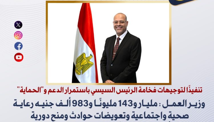 وزير العمل :1.1 مليار جنيه رعاية صحية واجتماعية وتعويضات حوادث ومنح دورية لـ 234 ألفً عاملًا غير منتظم