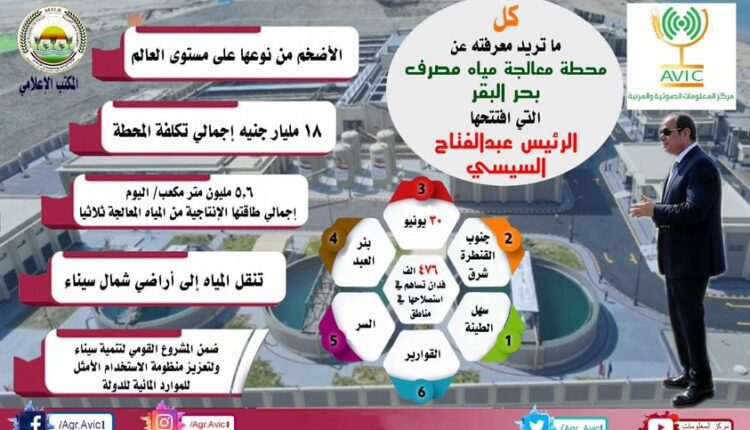 أصدر مركز المعلومات الصوتية والمرئية بوزارة الزراعة واستصلاح الأراضي، انفوجراف يتضمن أهم المعلومات الخاصة بمحطة معالجة مياه مصرف بحر البقر التي افتتحها الرئيس عبدالفتاح السيسي، امس الاثنين بمنطقة شرق بورسعيد.
