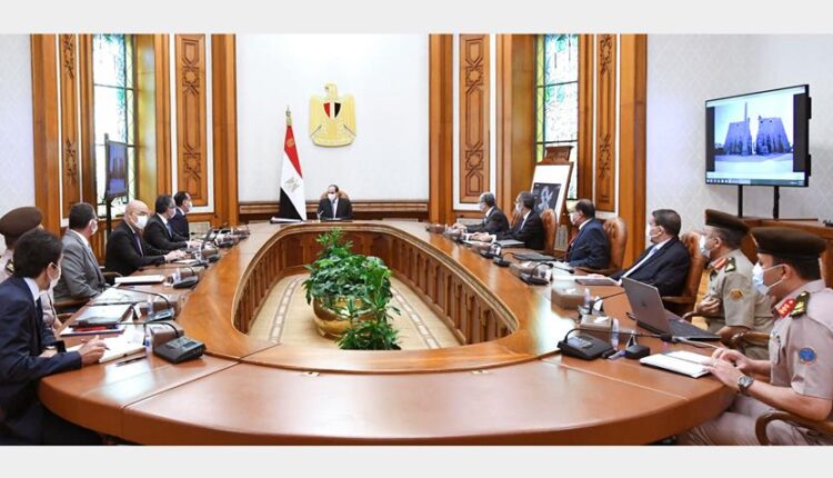 اجتمع السيد الرئيس عبد الفتاح السيسي اليوم مع الدكتور مصطفى مدبولي رئيس مجلس الوزراء، والدكتور محمد شاكر وزير الكهرباء والطاقة المتجددة، والدكتور خالد العناني وزير السياحة والآثار، والدكتور عمرو طلعت وزير الاتصالات وتكنولوجيا المعلومات، والدكتور عاصم الجزار وزير الإسكان والمرافق والمجتمعات العمرانية، واللواء أمير سيد أحمد مستشار رئيس الجمهورية للتخطيط العمراني، واللواء محمد أمين مستشار رئيس الجمهورية للشئون المالية، والمهندس أحمد زكي عابدين رئيس مجلس إدارة شركة العاصمة الإدارية الجديدة، واللواء أ.ح إيهاب الفار رئيس الهيئة الهندسية للقوات المسلحة، واللواء عاطف مفتاح مساعد رئيس الهيئة الهندسية لمشروع المتحف المصري الكبير، واللواء أكرم الجوهري مدير إدارة نظم المعلومات للقوات المسلحة.