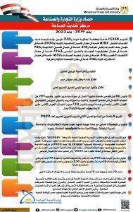– تطوير وانشاء 5 مناطق بالتجمعات الصناعية صديقة للبيئة بمركز تكنولوجيا دباغة الجلود بمدينة الروبيكي، ومركز تكنولوجيا الأثاث بمدينة دمياط، وحدة تعقيم النباتات الطبية والعطرية بالعاشر من رمضان، ومقر جديد لمركز تكنولوجيا البلاستيك بمنطقة مرغم، ومقر جديد مركز تكنولوجيا الصناعات التعدينية والرخام بمنطقه شق الثعبان.