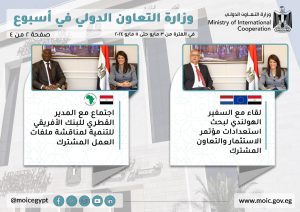 شهدت وزارة التعاون الدولي، خلال الأسبوع الماضي، العديد من الفعاليات والاجتماعات في إطار الدور الذي تقوم به الوزارة لتدعيم العلاقات الاقتصادية مع شركاء التنمية متعددي الأطراف والثنائيين، لدعم رؤية الدولة التنموية وتحفيز جهود العمل الإنمائي المشترك.