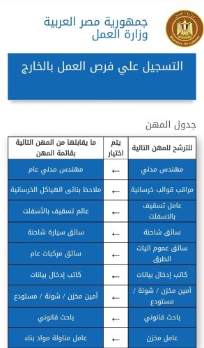 أعلن محمد جبران وزير العمل؛ اليوم السبت ، عن فتح باب التقديم على 643 فرص عمل وفرتها الوزارة في إحدي الشركات المتخصصة في المقاولات والانشاءات ،بدولة خليجية ، برواتب تعادل من 32 إلى 82 ألف جنيه مصري . وقال الوزير: إن هذه الفرص الجديدة وفرتها الوزارة بالتنسيق بين الإدارة المركزية للعلاقات الدولية ومكاتب التمثيل العمالي بالخارج ، والادارة العامة للتشغيل . وأوضح أن المهن المطلوبة عبارة عن: 25 مهندس مدني براتب شهري 82 ألف جنيه مصري ،و 50 مراقب قوالب خرسانية براتب 49200 جنيه مصري ، و 200 عامل تسقيف بالأسفلت براتب 32800 جنيه مصري ، و 200 عامل مخازن براتب 32800 جنيه مصري، و75 سائق شاحنة ، براتب 32800 جنيه مصري ، و75 سائق عمومي أليات ، براتب 32800 جنيه مصري ، و5 كاتب ادخال بيانات ،براتب 32800 جنيه مصري ، و10 أمين مخزن “مستودع”، براتب 41 ألف جنيه مصري، و3 باحث قانوني ،براتب 82 ألف جنيه مصري . ومن جانيها قالت هبة أحمد مدير عام الإدارة العامة للتشغيل: إن الشروط والمزايا المقدمة هي: أن السن من 22 إلى 55 سنة ، والمؤهل والخبرات العلمية وفقا للمهنة ، ولغات ، وفترة اختبار وفقا لقانون العمل ، وأن العقد حكومي ومدته سنتان،وضمان صحي، وتوفير سكن ومواصلات ،والأجازات طبقا لقانون العمل . وأوضحت أن التقديم من اليوم السبت الموافق 29 مارس الجاري ،ولمدة 5 أيام على الرابط التالي :https://egyres.manpower.gov.eg/JobAbroad/index .