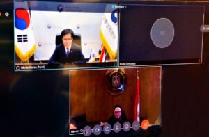 ومن جانبه أوضح السيد/ هان كوو يو، وزير التجارة بدولة كوريا الجنوبية أن بلاده تحرص كل الحرص على تعزيز العلاقات الثنائية مع مصر باعتبارها شريك اقتصادي رئيسي لكوريا الجنوبية في منطقة الشرق الأوسط وشمال أفريقيا، مشيراً إلى أن الحكومة الكورية تثق في أداء الاقتصاد المصري والذي حقق معدل نمو اقتصادي بلغ 3.6% خلال عام 2020 برغم تداعيات انتشار جائحة فيروس كورونا المستجد على المستوى العالمي والتي ساهمت في خفض معدلات النمو في عدد كبير من الدول المتقدمة.