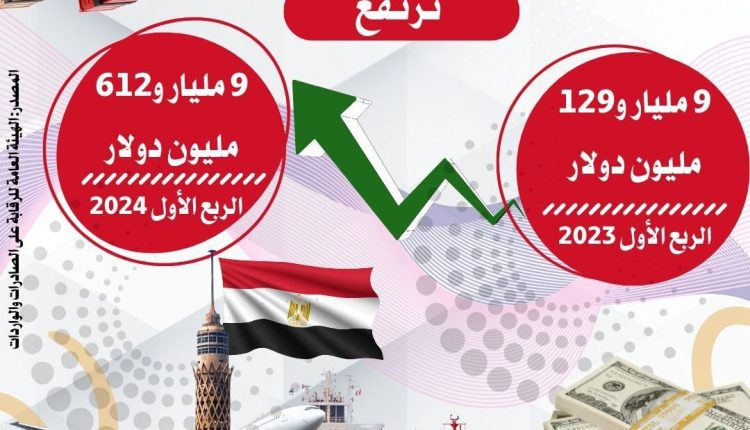 أعلن المهندس/ أحمد سمير وزير التجارة والصناعة أن الصادرات السلعية المصرية بلغت خلال الربع الأول من العام الجاري 9 مليار و612 مليون دولار مقابل 9 مليار و129 مليون دولار خلال نفس الفترة من عام 2023 بنسبة ارتفاع بلغت 5.3%.