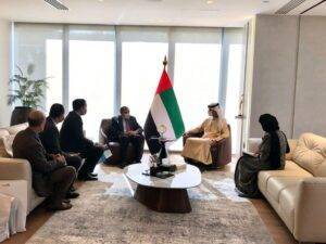 ألتقي الشيخ الدكتور عمار بن ناصر المعلا – ملحق التعليم وعلوم التكنولوجيا لدولة الامارات لدي مصر بمقر الملحقية أ. د منصور حسن – رئيس جامعة بني سويف وعدد من قيادات الجامعة منهم أ. م. د ايمن غنيم منسق عام الوافدين، أ.د طارق على عميد معهد علوم الليزر، أ. د سما الدق مدير مكتب التصنيف الدولي، أ. أحمد عيد مدير إدارة الوافدين، وذلك بحضور الاستاذة إيمان علي صالح الحوسني ملحق فني بملحقية التعليم وعلوم التكنولوجيا لدي مصر.