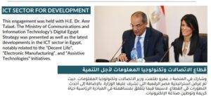 من ناحيته أكد الدكتور/ عمرو طلعت وزير الاتصالات وتكنولوجيا المعلومات أنه قد تم اطلاق ما يقرب من 120 خدمة حكومية على منصة مصر الرقمية وذلك ضمن حزم خدمات التموين، والتوثيق، والمرور، والمحاكم، والتأمينات الاجتماعية، والأحوال المدنية؛ مشيرا إلى حرص الدولة المصرية على تسريع وتيرة التحول الرقمى وتبنى التقنيات الحديثة لحوكمة الأداء وتمكين الحكومة من إدارة مواردها بكفاءة؛ موضحا أن مصر جاءت ضمن الدول مرتفعة الأداء فى مؤشر تطور التقنيات الحكومية GOVTECH لعام 2020، وكذلك ضمن أكبر ١٠ دول نمواً فى الشمول الرقمى، كما تقدم ترتيبها فى مؤشر جاهزية الشبكة ثمانية مراكز خلال عام، بالإضافة الى تقدم ترتيبها فى مؤشر “جاهزية الحكومة للذكاء الاصطناعي” 55 مركزا بالمقارنة بين عامى 2019 و2020.