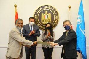 *وزيرة التعاون الدولي والقائم بأعمال وزير الصحة يشهدان توقيع اتفاقية بين السفارة اليابانية ومنظمة اليونيسيف