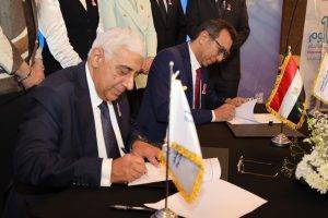 وقع البروتوكول اليوم, اشرف القاضي – رئيس مجلس ادارة المصرف المتحد والمهندس تامر شوقي – رئيس مجلس امناء مؤسسة بهية.
