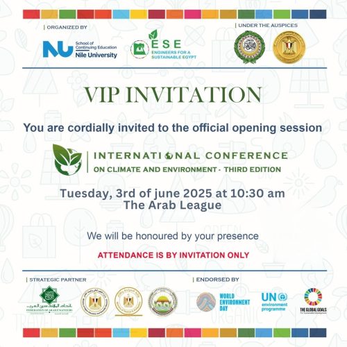 تحت رعاية رئاسة مجلس الوزراء، وجامعة الدول العربية انطلاق النسخة الثالثة من المؤتمر الدولي للمناخ والبيئة 3 يونيو المقبل