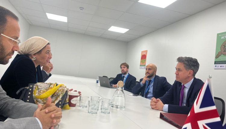 عقدت الدكتورة ياسمين فؤاد وزيرة البيئة لقاءا ثنائيا مع السيد إيد ميليباند وزير الدولة البريطاني لأمن الطاقة وصافي الانبعاثات الصفرية والوفد المرافق له، بحضور السفير وائل أبو المجد مساعد وزير الخارجية لشئون البيئة والمناخ والتنمية المستدامة والدكتور عمرو أسامة مستشار الوزيرة للتغيرات المناخية والأستاذة سها طاهر رئيس الإدارة المركزية للتغيرات المناخية وذلك على هامش مشاركتها في الشق الوزاري لمؤتمر المناخ COP29 بباكو بأذربيجان.
