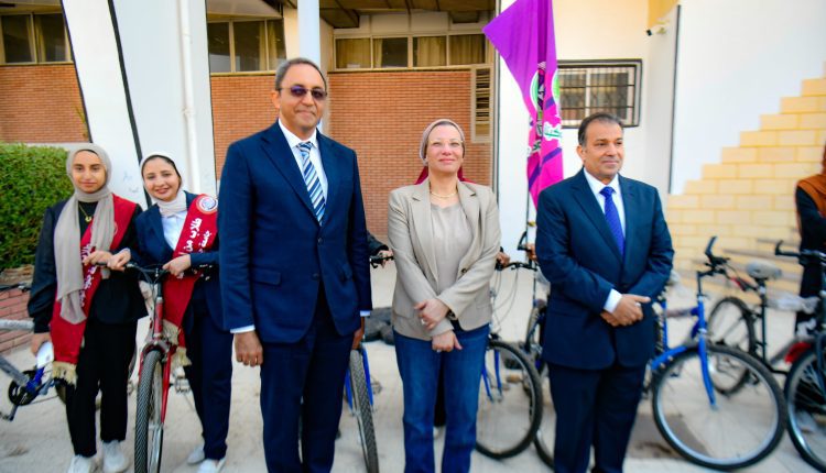 قامت الدكتورة ياسمين فؤاد وزيرة البيئة، بتسليم جوائز المسابقة البيئية على الفائزين من مسابقة “صحتنا من صحة كوكبنا”، من جامعة جنوب الوادي بمحافظة قنا، وذلك ضمن فعاليات المرحلة الثانية من مسابقة “صحتنا من صحة كوكبنا”، التى تنظمها وزارة البيئة فى الجامعات المصرية بالتعاون مع شركة سانوفي مصر المتخصصة في مجال صناعة الأدوية، ووزارة التعليم العالى والبحث العلمي والمجلس الأعلى للجامعات، وبمشاركة ما لا يقل عن ١٠٠٠ طالب وطالبة من الجامعة، حيث تم توزيع ٣٠ دراجة على الفائزين فى المسابقة. وذلك بحضور الدكتور خالد عبدالحليم محافظ قنا، والدكتور احمد عكاوى رئيس جامعة الوادى الجديد.