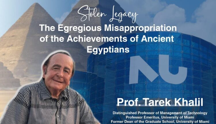 المحاضرة التي يقدمها الدكتور طارق خليل، الرئيس المؤسس لجامعة النيل، وأستاذ إدارة التكنولوجيا المتميز، وأستاذ فخري بجامعة ميامي الأمريكية، والعميد الأسبق لكلية الدراسات العليا بجامعة ميامي، ورئيس مجلس إدارة والرئيس المؤسس للرابطة الدولية لإدارة التكنولوجيا (IAMOT)، تتناول قضية بالغة الأهمية تتعلق بما وصفه البروفيسور طارق خليل بـ”التراث المسروق”، والمتمثل في الاستحواذ غير المنصف على إنجازات المصريين القدماء ونسبها إلى حضارات أخرى، حيث يسعى من خلال محاضرته إلى إعادة تسليط الضوء على الدور الريادي للحضارة المصرية في وضع أسس العلوم والمعارف الإنسانية.