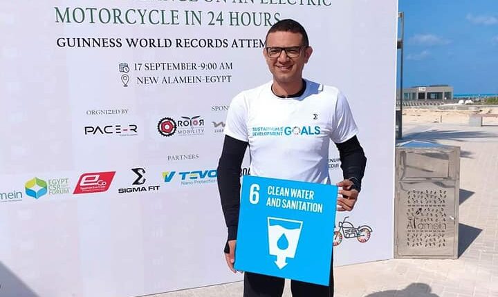 وقد اصدرت موسوعة جينيس بيانا اكدت فيه على تحقيق المغامر المصرى أكبر مسافة على دراجة نارية كهربائية في 24 ساعة (فردي) يوم 17سبتمبر 2021 وأن هذا الحدث يأتى ضمن المبادرة الرئاسية “اتحضر للأخضر” وتحت رعاية وزارة البيئة ووزارة الشباب والرياضة وبحضور العديد من المسؤولين الحكوميين وممثلي وسائل الاعلام .
