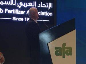 قال م . رائد الصعوب الامين العام للاتحاد اننا نغطي اسمدة ثلث انتاج العالم مقابل 6 % من الاستهلاك ، مؤكدا أن الحل الشراكة مع الدول الافريقية ودول غرب افريقبا تستهلك ٣ مليون طن وتخطط لمضاعفة حصص الانتاج بالوطن العربى.