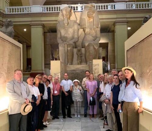 وقد قام الوفد بزيارة قاعات العرض المختلفة للمتحف على مدار ساعتين رافقهم خلالها الأستاذ أحمد سمير أمين بالمتحف، حيث استمتعوا بمشاهدة كنوز المتحف والتي انبهروا بجمالها ورونقها حيث تعبر عن مدي عراقة الحضارة المصرية وتفردها.