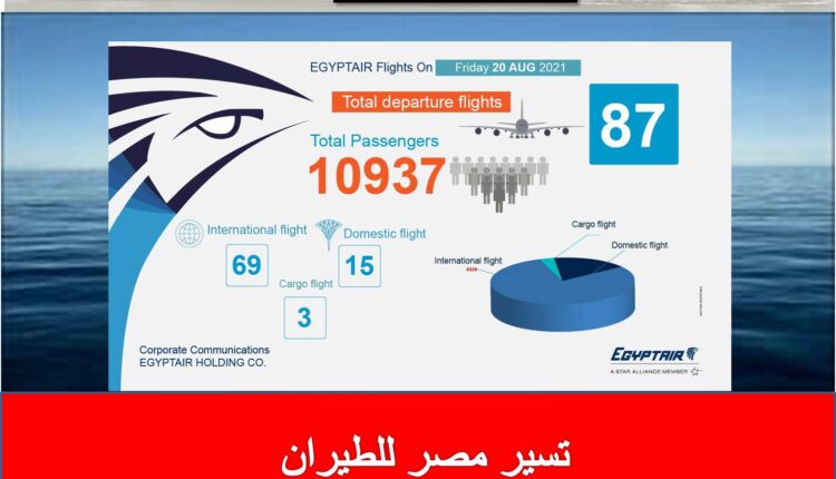 تسير مصر للطيران غدا الجمعة ٢٠ أغسطس ٨٧ رحلة جوية بمعدل ٦٩ رحلة دولية إلى كل من تورنتو، دبي، بغداد، لاجوس، كازبلانكا، أكرا، تونس، مدريد، دوالا، الدوحه، أثينا، لارناكا، دوسلدورف، لندن، نيويورك، ميلانو، باريس، أبوجا، جنيف، إسطنبول، امستردام، فرانكفورت، كوبنهاجن، بروكسل، برلين، أبوظبي، موسكو، جوبا، فيينا، ميونيخ، بودابيست، روما، البحرين، الخرطوم، عمَان، بيروت، الشارقة، عنتيبي، نيروبي، أديس ابابا، واشنطن،إربيل، و١٥ رحلة داخلية الى كل من شرم الشيخ والغردقة والأقصر وأسوان، و٣رحلات شحن جوي تنقل جميع هذه الرحلات ١٠٩٣٧ راكبا .
