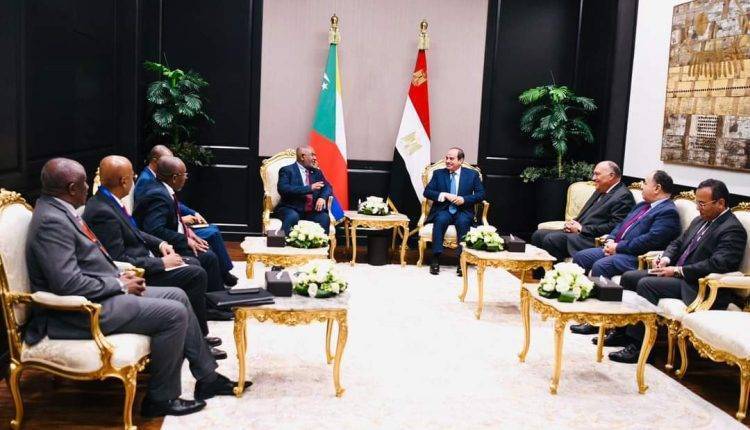 من جانبه، أعرب رئيس جزر القمر عن تقدير بلاده الكبير لمصر قيادة وشعباً ولدورها الرائد في القارة الأفريقية، مؤكداً الحرص على الاستفادة من الجهود والتجربة والرؤية المصرية لتعزيز العمل الأفريقي المشترك وقيادة دفة الاتحاد الأفريقي، خاصةً في ضوء تولي بلاده حالياً لرئاسة الاتحاد، الأمر الذي يفرض تكثيف التعاون والتنسيق مع مصر وقيادتها على خلفية الثقل المحوري الذي تمثله مصر في المنطقة والقارة بأسرها على صعيد صون السلم والأمن، ودعم تطلعات الشعوب الأفريقية نحو تحقيق التنمية والازدهار.