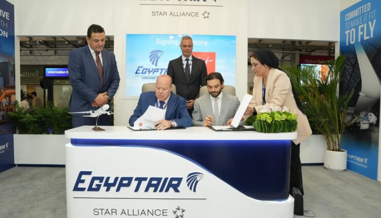 على هامش فعاليات معرض دبي للطيران ٢٠٢٥ مصر للطيران للخدمات الأرضية توقع عقداً جديداً للمناولة الأرضية في معرض دبي للطيران مع شركة (SKY HORIZON)