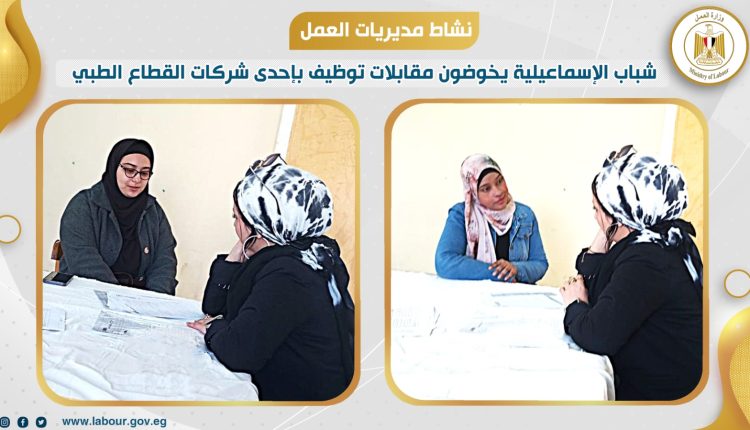 نظمت مديرية العمل بمحافظة الإسماعيلية المقابلات الشخصية لعدد 100 من شباب الخريجين والباحثين عن عمل، وذلك بمقر المديرية بالتعاون مع إدارة إحدى الشركات الرائدة في مجال المستلزمات الطبية.